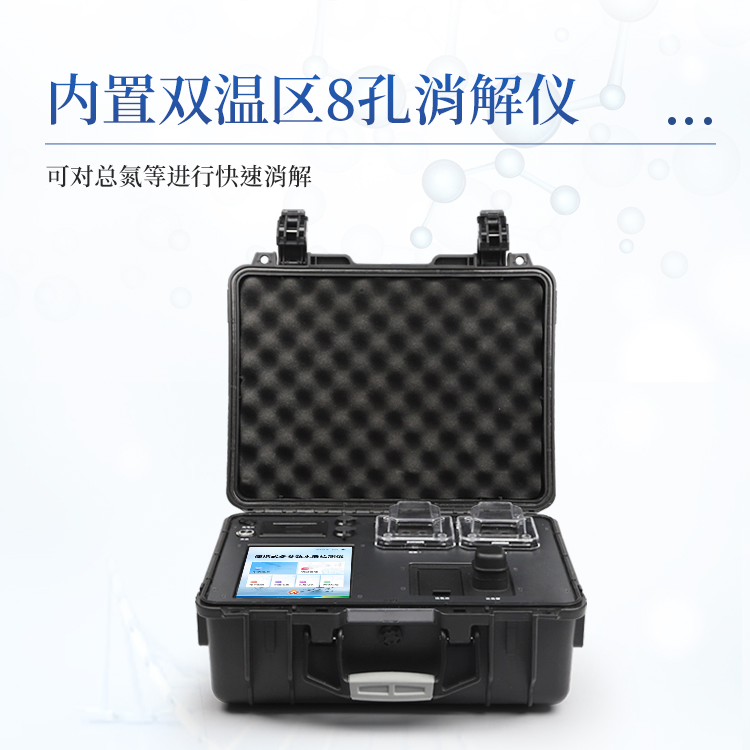 便携式总氮检测仪采用高强度PVC工程塑料手提箱设计,消解检测一体式设计,其中消解模块具备双温区功能,检测部分同时具备360°旋转比色试管检测和比色皿检测,安卓智能操作系统,8英寸高清液晶触摸屏,光纤检测技术,进口光源,内置大容量锂电池,便携多参数水质检测仪具有性能稳定、测量准确、测定范围广、功能强大、操作简单等特点。